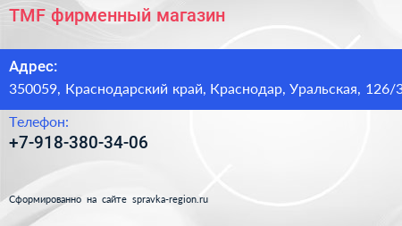 TMF, фирменный магазин по адресу 350059, Краснодарский край, Краснодар, Уральская, 126/3 в дальнейшем Организация, размещена в следующих категориях: