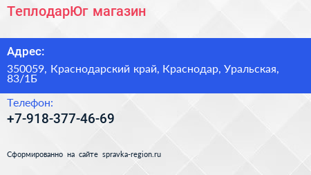 ТеплодарЮг, магазин по адресу 350059, Краснодарский край, Краснодар, Уральская, 83/1Б в дальнейшем Организация, размещена в следующих категориях: