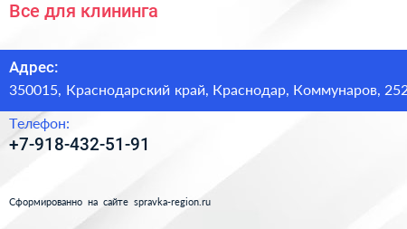 Все для клининга по адресу 350015, Краснодарский край, Краснодар, Коммунаров, 252 в дальнейшем Организация, размещена в следующих категориях: