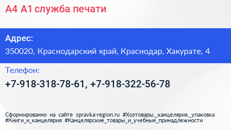А4-А1, служба печати по адресу 350020, Краснодарский край, Краснодар, Хакурате, 4 в дальнейшем Организация, размещена в следующих категориях: