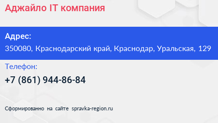 Аджайло, IT-компания по адресу 350080, Краснодарский край, Краснодар, Уральская, 129 в дальнейшем Организация, размещена в следующих категориях: