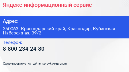 Яндекс, информационный сервис по адресу 350063, Краснодарский край, Краснодар, Кубанская Набережная, 39/2 в дальнейшем Организация, размещена в следующих категориях: