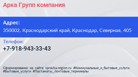 Арка Групп, компания по адресу 350002, Краснодарский край, Краснодар, Северная, 405 в дальнейшем Организация, размещена в следующих категориях: