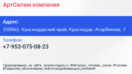 АртСалам, компания по адресу 350062, Краснодарский край, Краснодар, Атарбекова, 7 в дальнейшем Организация, размещена в следующих категориях: