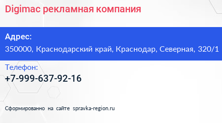 Digimac, рекламная компания по адресу 350000, Краснодарский край, Краснодар, Северная, 320/1 в дальнейшем Организация, размещена в следующих категориях: