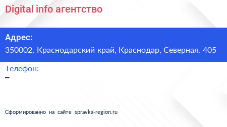 Digital info, агентство по адресу 350002, Краснодарский край, Краснодар, Северная, 405 в дальнейшем Организация, размещена в следующих категориях: