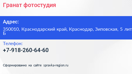 Гранат, фотостудия по адресу 350010, Краснодарский край, Краснодар, Зиповская, 5 лит Б в дальнейшем Организация, размещена в следующих категориях: