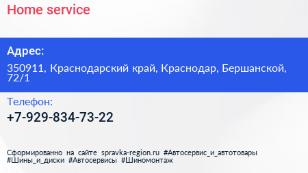 Home service по адресу 350911, Краснодарский край, Краснодар, Бершанской, 72/1 в дальнейшем Организация, размещена в следующих категориях: