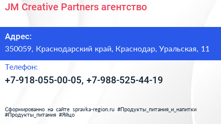 JM Creative Partners, агентство по адресу 350059, Краснодарский край, Краснодар, Уральская, 11 в дальнейшем Организация, размещена в следующих категориях: