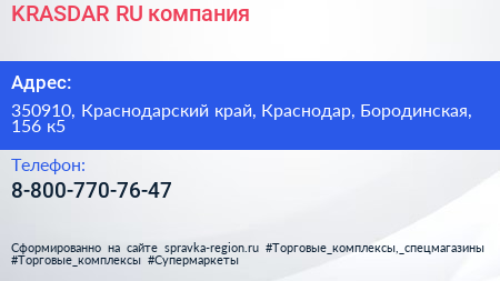 KRASDAR.RU, компания по адресу 350910, Краснодарский край, Краснодар, Бородинская, 156 к5 в дальнейшем Организация, размещена в следующих категориях: