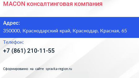 MACON, консалтинговая компания по адресу 350000, Краснодарский край, Краснодар, Красная, 65 в дальнейшем Организация, размещена в следующих категориях: