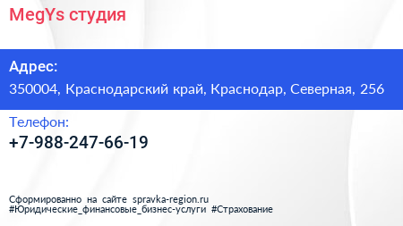 MegYs, студия по адресу 350004, Краснодарский край, Краснодар, Северная, 256 в дальнейшем Организация, размещена в следующих категориях: