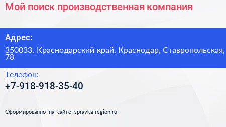 Мой поиск, производственная компания по адресу 350033, Краснодарский край, Краснодар, Ставропольская, 78 в дальнейшем Организация, размещена в следующих категориях: