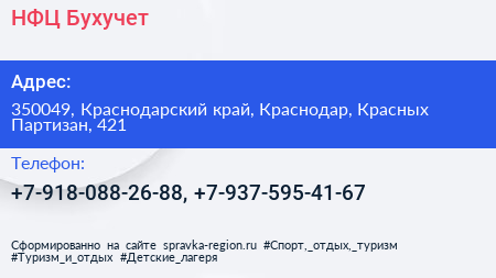 НФЦ Бухучет по адресу 350049, Краснодарский край, Краснодар, Красных Партизан, 421 в дальнейшем Организация, размещена в следующих категориях: