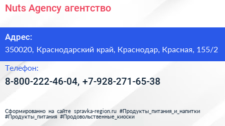 Nuts Agency, агентство по адресу 350020, Краснодарский край, Краснодар, Красная, 155/2 в дальнейшем Организация, размещена в следующих категориях: