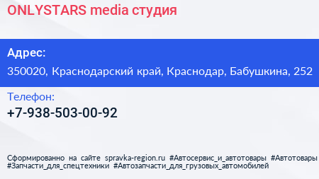 ONLYSTARS media, студия по адресу 350020, Краснодарский край, Краснодар, Бабушкина, 252 в дальнейшем Организация, размещена в следующих категориях: