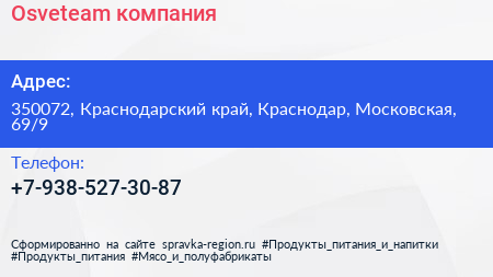 Osveteam, компания по адресу 350072, Краснодарский край, Краснодар, Московская, 69/9 в дальнейшем Организация, размещена в следующих категориях: