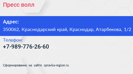 Пресс волл по адресу 350062, Краснодарский край, Краснодар, Атарбекова, 1/2 в дальнейшем Организация, размещена в следующих категориях: