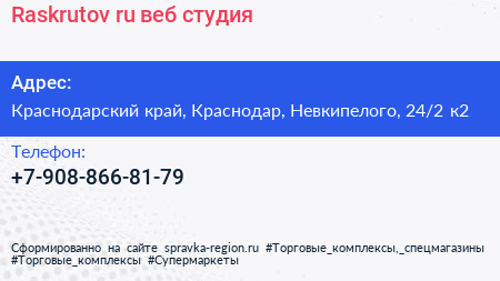 Raskrutov.ru, веб-студия по адресу Краснодарский край, Краснодар, Невкипелого, 24/2 к2 в дальнейшем Организация, размещена в следующих категориях: