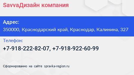 SavvaДизайн, компания по адресу 350000, Краснодарский край, Краснодар, Калинина, 327 в дальнейшем Организация, размещена в следующих категориях: