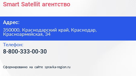 Smart Satellit, агентство по адресу 350000, Краснодарский край, Краснодар, Красноармейская, 34 в дальнейшем Организация, размещена в следующих категориях: