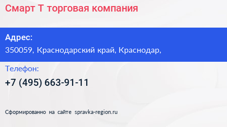Смарт-Т, торговая компания по адресу 350059, Краснодарский край, Краснодар, в дальнейшем Организация, размещена в следующих категориях: