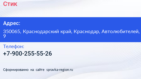 Стик по адресу 350065, Краснодарский край, Краснодар, Автолюбителей, 9 в дальнейшем Организация, размещена в следующих категориях: