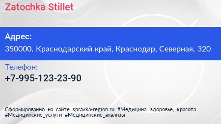 Zatochka Stillet по адресу 350000, Краснодарский край, Краснодар, Северная, 320 в дальнейшем Организация, размещена в следующих категориях: