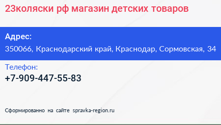 23коляски.рф, магазин детских товаров по адресу 350066, Краснодарский край, Краснодар, Сормовская, 34 в дальнейшем Организация, размещена в следующих категориях: