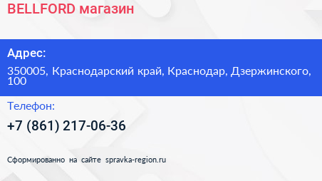 BELLFORD, магазин по адресу 350005, Краснодарский край, Краснодар, Дзержинского, 100 в дальнейшем Организация, размещена в следующих категориях: