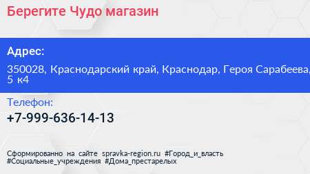 Берегите Чудо, магазин по адресу 350028, Краснодарский край, Краснодар, Героя Сарабеева, 5 к4 в дальнейшем Организация, размещена в следующих категориях: