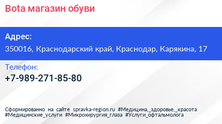 Bota, магазин обуви по адресу 350016, Краснодарский край, Краснодар, Карякина, 17 в дальнейшем Организация, размещена в следующих категориях: