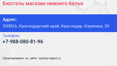 Бюстель, магазин нижнего белья по адресу 350016, Краснодарский край, Краснодар, Карякина, 20 в дальнейшем Организация, размещена в следующих категориях: