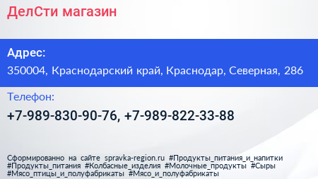 ДелСти, магазин по адресу 350004, Краснодарский край, Краснодар, Северная, 286 в дальнейшем Организация, размещена в следующих категориях: