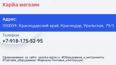 Kapika, магазин по адресу 350059, Краснодарский край, Краснодар, Уральская, 79/1 в дальнейшем Организация, размещена в следующих категориях:
