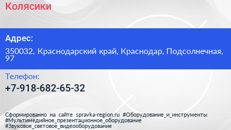 Колясики по адресу 350032, Краснодарский край, Краснодар, Подсолнечная, 97 в дальнейшем Организация, размещена в следующих категориях: