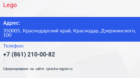 Lego по адресу 350005, Краснодарский край, Краснодар, Дзержинского, 100 в дальнейшем Организация, размещена в следующих категориях: