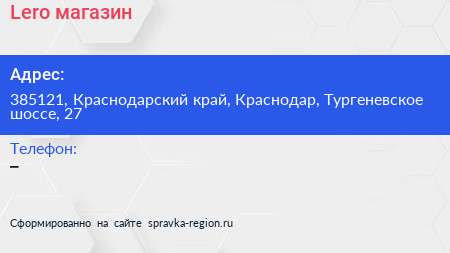 Lero, магазин по адресу 385121, Краснодарский край, Краснодар, Тургеневское шоссе, 27 в дальнейшем Организация, размещена в следующих категориях: