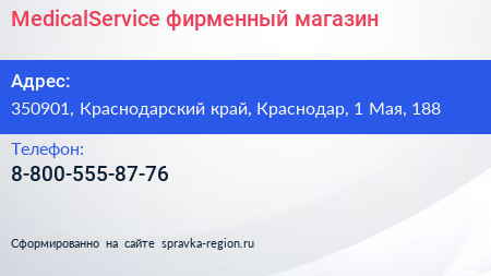 MedicalService, фирменный магазин по адресу 350901, Краснодарский край, Краснодар, 1 Мая, 188 в дальнейшем Организация, размещена в следующих категориях: