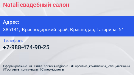 Natali, свадебный салон по адресу 385141, Краснодарский край, Краснодар, Гагарина, 51 в дальнейшем Организация, размещена в следующих категориях: