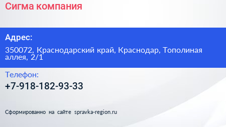 Сигма, компания по адресу 350072, Краснодарский край, Краснодар, Тополиная аллея, 2/1 в дальнейшем Организация, размещена в следующих категориях: