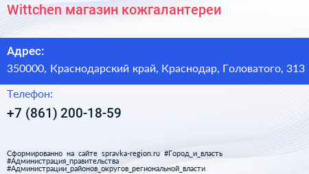 Wittchen, магазин кожгалантереи по адресу 350000, Краснодарский край, Краснодар, Головатого, 313 в дальнейшем Организация, размещена в следующих категориях: