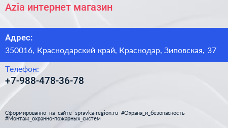 Azia, интернет-магазин по адресу 350016, Краснодарский край, Краснодар, Зиповская, 37 в дальнейшем Организация, размещена в следующих категориях: