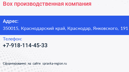 Box, производственная компания по адресу 350015, Краснодарский край, Краснодар, Янковского, 191 в дальнейшем Организация, размещена в следующих категориях: