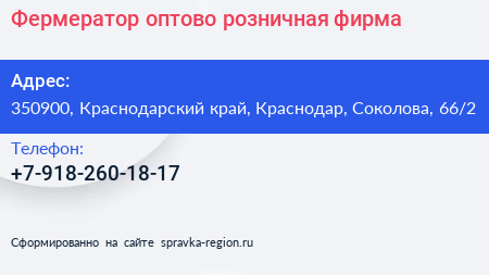 Фермератор, оптово-розничная фирма по адресу 350900, Краснодарский край, Краснодар, Соколова, 66/2 в дальнейшем Организация, размещена в следующих категориях: