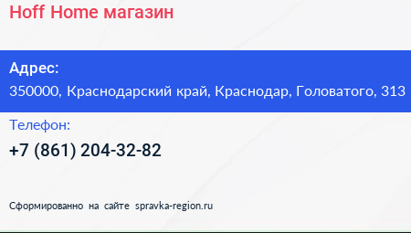 Hoff Home, магазин по адресу 350000, Краснодарский край, Краснодар, Головатого, 313 в дальнейшем Организация, размещена в следующих категориях:
