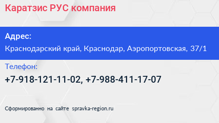 Каратзис РУС, компания по адресу Краснодарский край, Краснодар, Аэропортовская, 37/1 в дальнейшем Организация, размещена в следующих категориях: