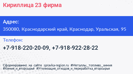 Кириллица 23, фирма по адресу 350080, Краснодарский край, Краснодар, Уральская, 95 в дальнейшем Организация, размещена в следующих категориях: