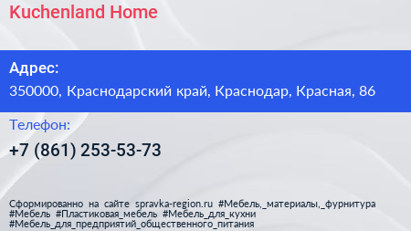 Kuchenland Home по адресу 350000, Краснодарский край, Краснодар, Красная, 86 в дальнейшем Организация, размещена в следующих категориях: