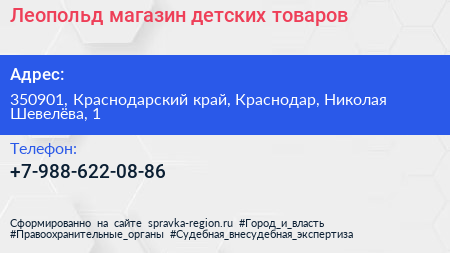 Леопольд, магазин детских товаров по адресу 350901, Краснодарский край, Краснодар, Николая Шевелёва, 1 в дальнейшем Организация, размещена в следующих категориях: